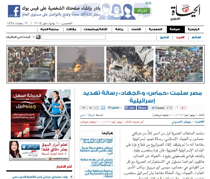 جريدة سعودية: مصر سلمت “حماس” رسالة تهديد إسرائيلية