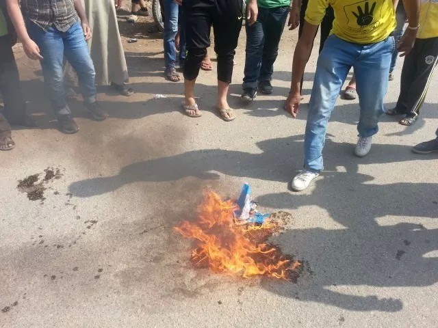 ورفع المشاركون الأعلام المصرية والفلسطينية وشارات رابعة، مرددين عددًا من الهتافات الثورية، منها: "رغم المحنة ورغم الأزمة مش حنسيب اخوتنا في غزة، يسقط يسقط حكم العسكر، مصر مايحكمهاش سفاح.. يسقط يسقط عبد الفتاح، مكملين ومش خايفين" كما أحرقوا علم الكيان الصهيو ني وسط تفاعل من المارة والأهالي.