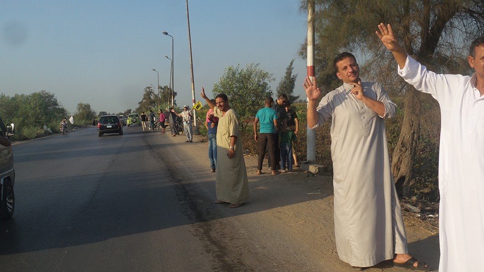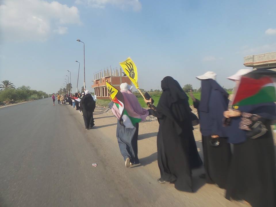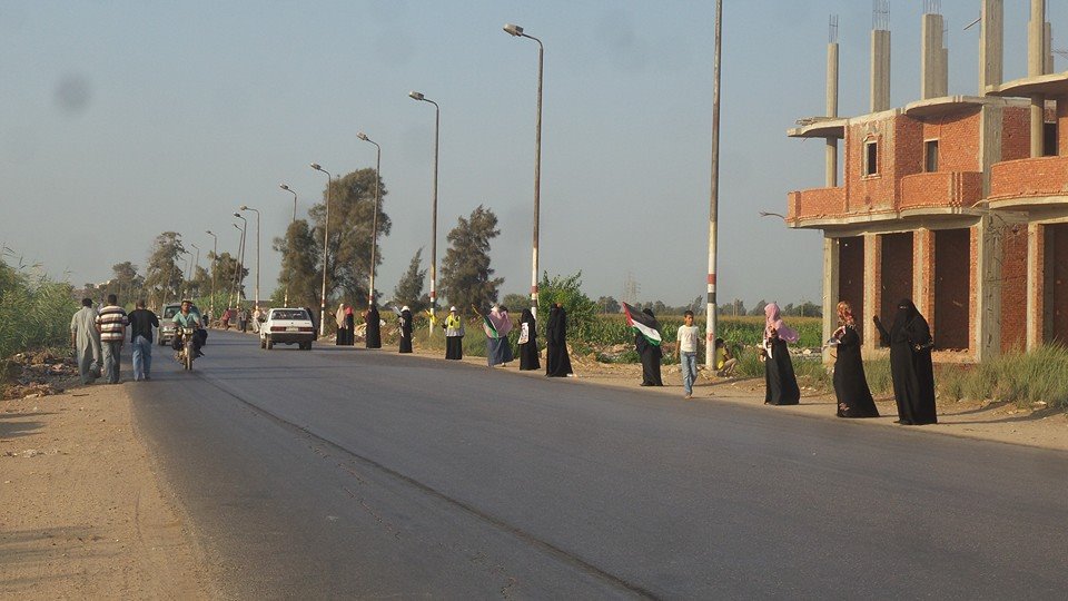 نظم أهالي قرية "العدوة" بمحافظة "الشرقية" مسقط رأس الرئيس الشرعي الدكتور محمد مرسي، سلسله بشرية مناهضة للانقلاب العسكري علي طريق "الزقازيق – ههيا"، رفعوا خلالها صور الرئيس "مرسي"، وشارات "رابعة" .