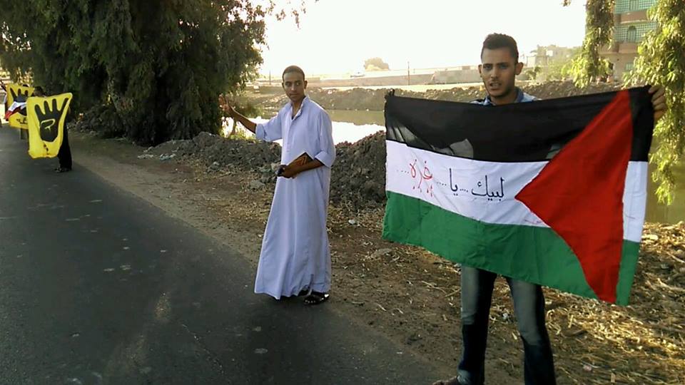 سلسلة بشرية مناهضةً للانقلاب بـ”دريوط” في “أسيوط”