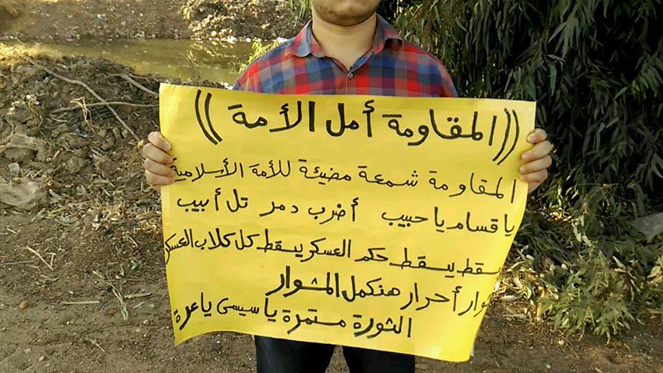 رفع المشاركون أعلام مصر، وشارات رابعة، مرددين هتافات داعمة لأهالي قطاع غزة، ومنددين بتردي الأوضاع الاقتصادية، وغلاء الأسعار.