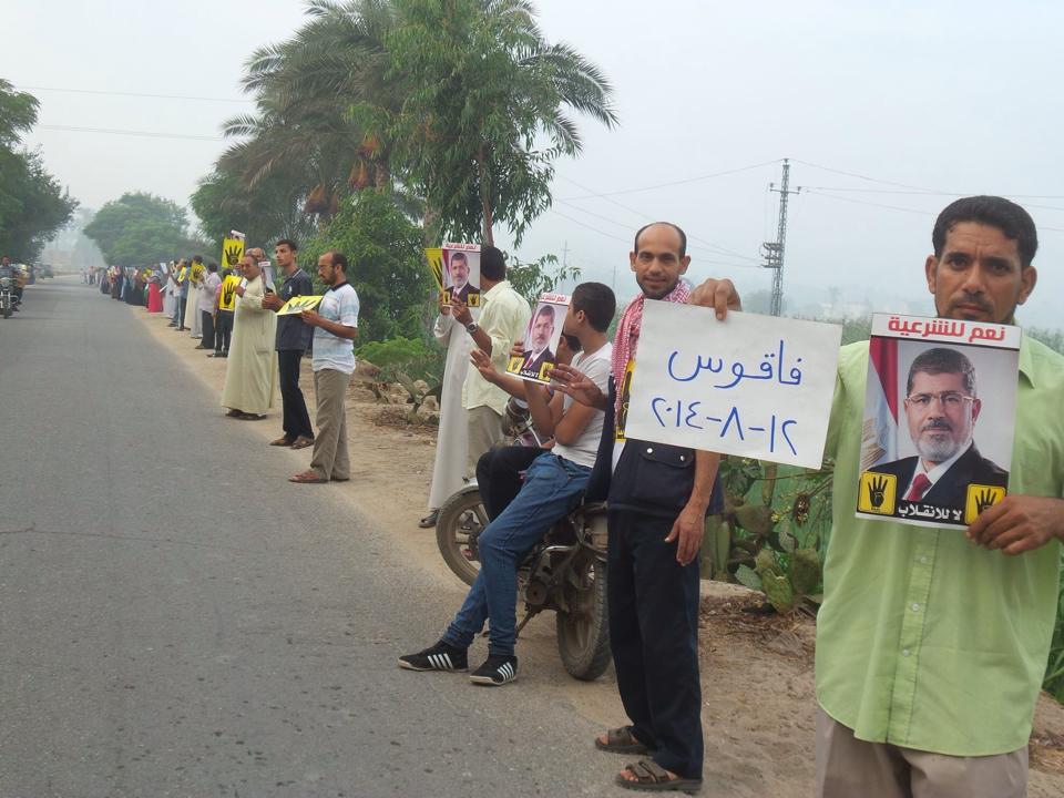 نظم "التحالف الوطني لدعم الشريعة ورفض الانقلاب" في "فاقوس" بالشرقية، سلسلة بشرية انتهت بمسيرة. ردد المشاركون فيها هتافات مثل: "غزة وسوريا ورابعة اخوات.. مش هنسيب حق اللي مات".