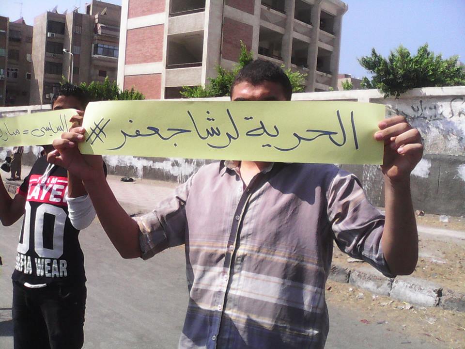 فيما ندد المشاركون بالانتهاكات التي يرتكبها أمن الانقلاب بحق المتظاهرين والمعتقليين، فيما طالبوا بالإفراج عن المعتقلة "رشا جعفر"، والمتي اعتقلت ثان أيام انتخابات العسكر، وكذلك طالبوا بالإفراج عن كافة المعتقليين في سجون العسكر .