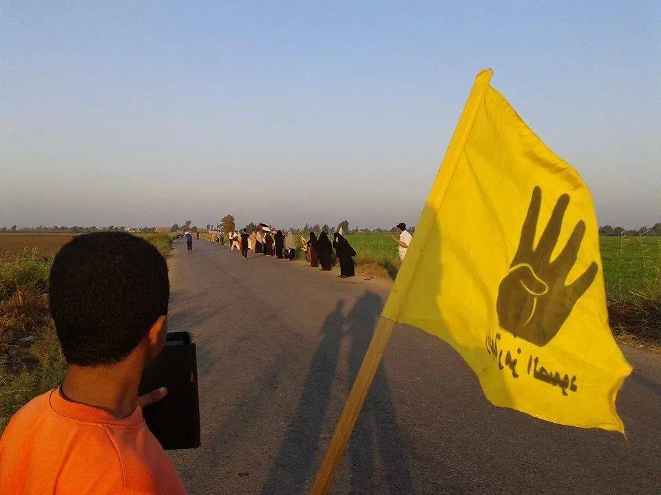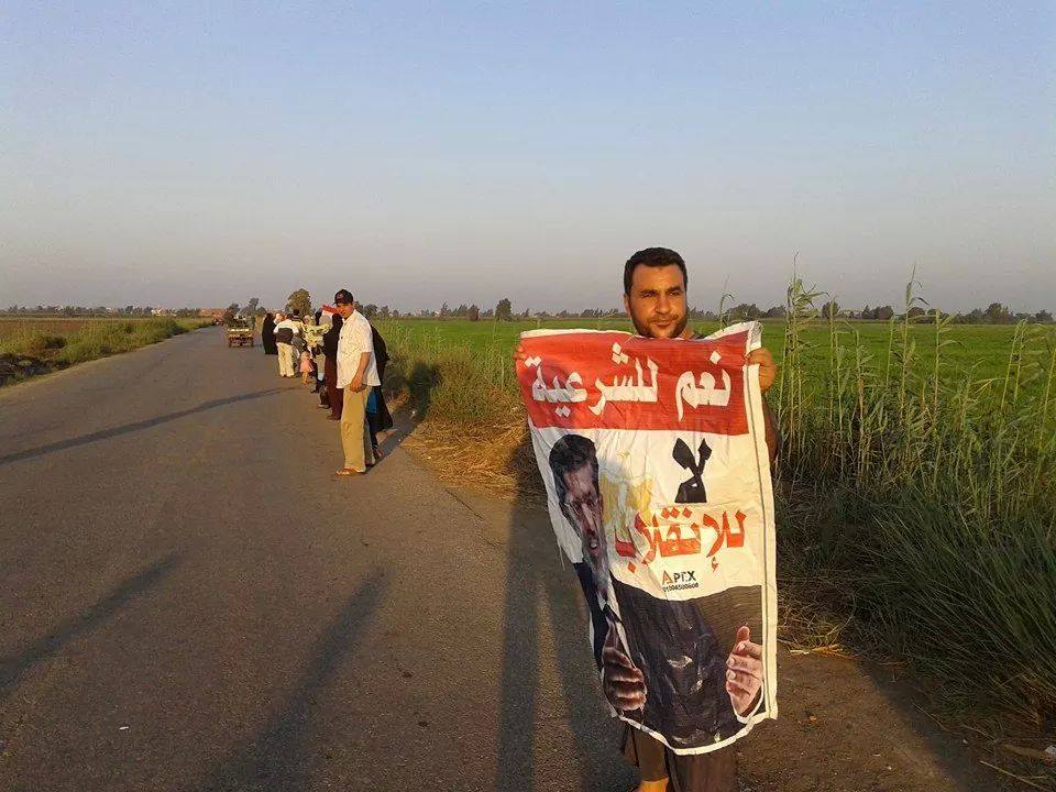 نظم أهالي مركز "قلين" بمحافظة "كفر الشيخ" سلسلة بشرية على طريق "قلين – كفر الشيخ"، في ذكرى مرور عام على مجزرتي فض اعتصامي رابعة العدوية والنهضة.