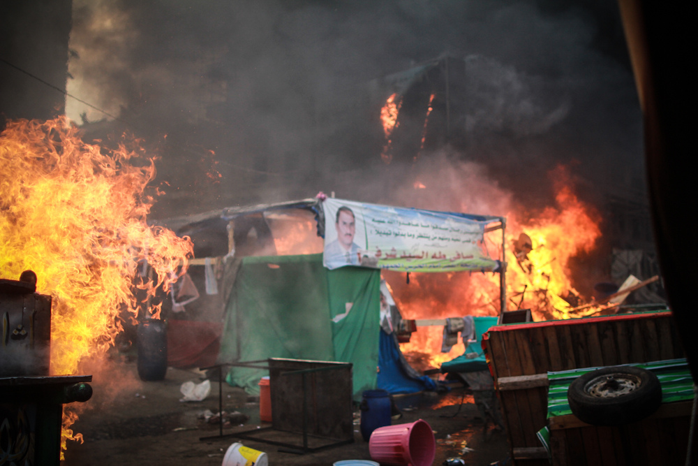 "قنصٌ.. قتلٌ بالرصاص الحي..غازٌ خانقٌ ومسيلٌ للدموع.. طائراتٌ تقصف.. شهداءٌ كثُر.. جرحى.. معتقلين بالآلاف"، ذلك كله كان حصيلة العسكر من مجزرة رابعة العدوية، ولكن يبدو أنهم لم يكتفوا بكل هذه الجرائم، فامتدت يدهم لتحرق المستشفى الميداني، في مشهدٍ قاسٍ يشبه وحشية الاحتلال الصهيوني، وكأن "رابعة" باتت جزءً أشبه بـ"غزة"، التي يقصفها الاحتلال، ولكن "رابعة" قصفت بأيدي مصرية.