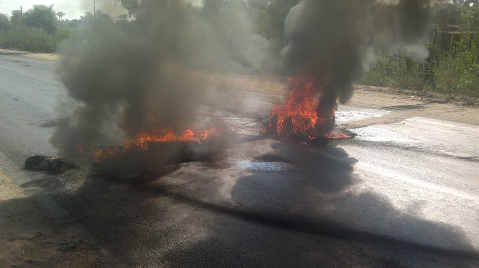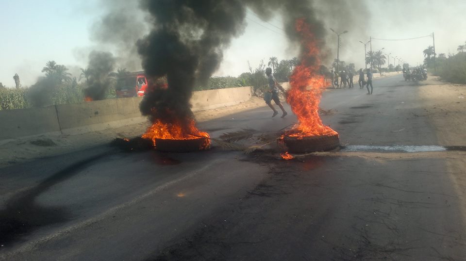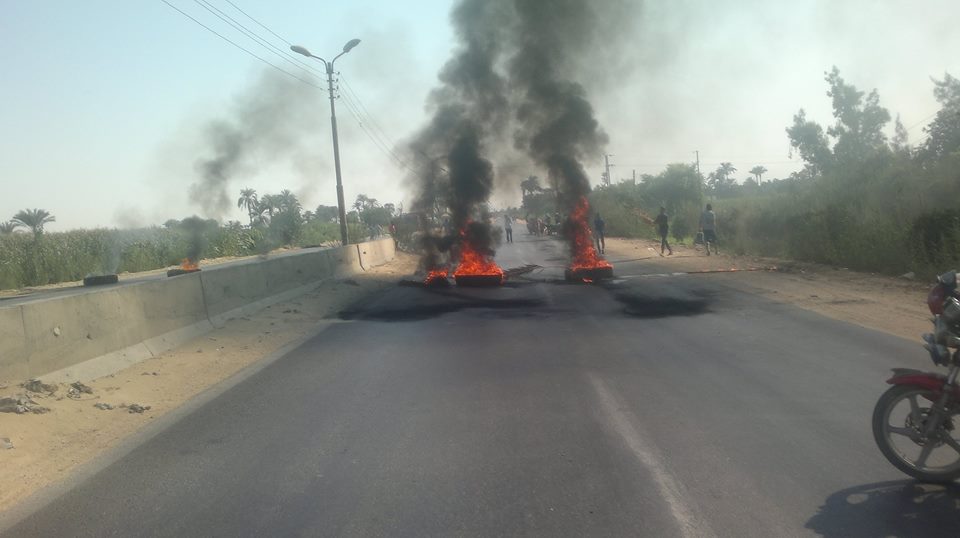 حيث تم استخدام البنزين وإطارات السيارات، لقطع الطريق، وذلك بالقرب من منطقة "كوبري السوق" على الطريق الزراعى، وأدى ذلك إلى توقف الحركة المرورية على الطريق.