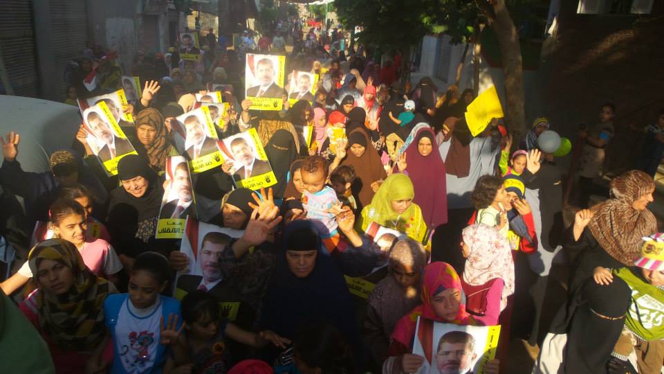 نظم عدد من رافضي الانقلاب في محافظة "الجيزة"، مسيرة بـ"المنصورية" شمال المحافظة، رفع المشاركون خلالها صورًا للرئيس الشرعي الدكتور "محمد مرسي"، وكذلك شارات "رابعة"، وأعلام "مصر".