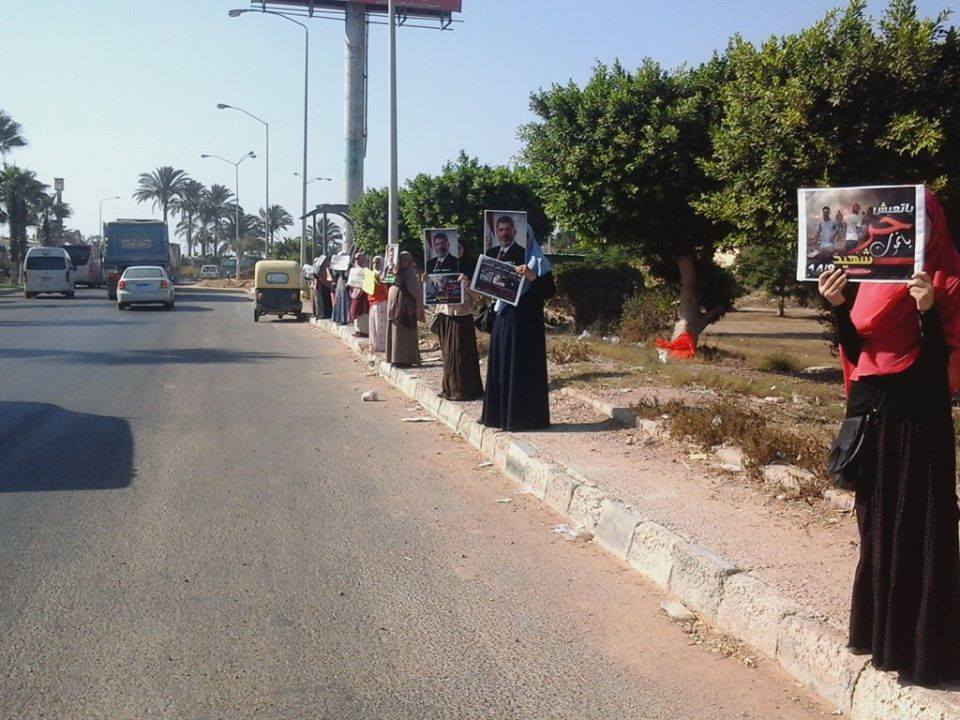 نظم رافضو الانقلاب بمحافظة "الأسكندرية"، سلسلة بشرية في مدخل مدينة "برج العرب"، حمل المشاركون لافتات تندد بالانتهاكات بحق رافضي الانقلاب في سجون العسكر، كما حملوا شارات "رابعة" .