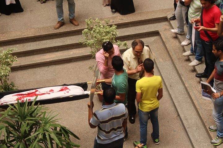 ومن جانبه طالب رئيس الجامعة "العزازي"؛ الطلاب بإيقاف الفعالية، وهو مارفضه الطلاب، مؤكدين علي استمرار حاركهم الثوري الطلابي حتى إسقاط الانقلاب، والقصاص للشهداء.