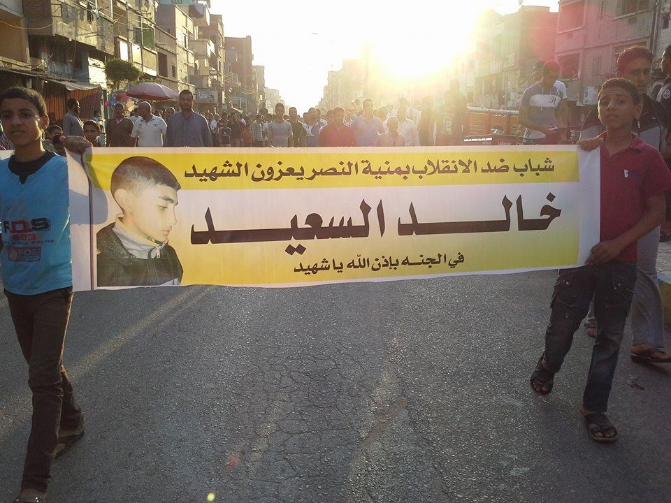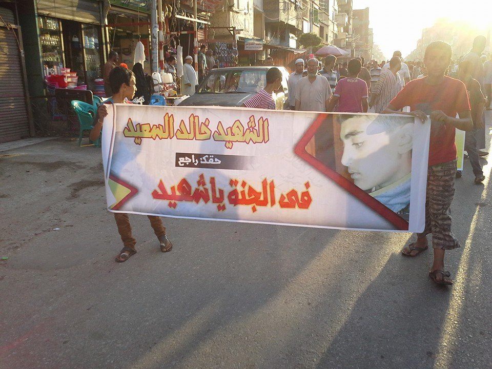 يذكر أن "خالد السعيد"، ذو الـ 14 ربيعاً ، قد استشهد عقب قيام سيارة مسرعة يقودها أحد البلطجية المتعاونين مع الداخلية، بدهسه أثناء تظاهرة في مسيرة لحركة "شباب ضد الانقلاب" بمركز مدينة "منية النصر" بالدقهلية.