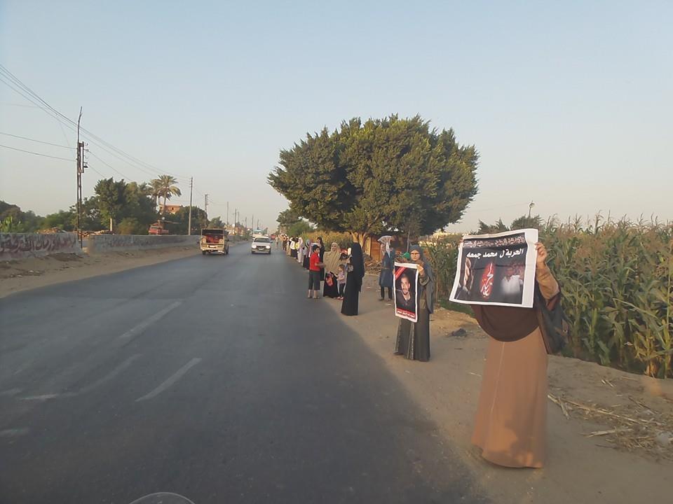 نظم رافضو الانقلاب بـ"أنشاص الرمل" في محافظة "الشرقية"، سلسلة بشرية، عصر اليوم، على طريق "القاهرة-الإسماعيلية الزراعي"، رفع المشاركون خلالها أعلام "مصر"، وشارات "رابعة" .