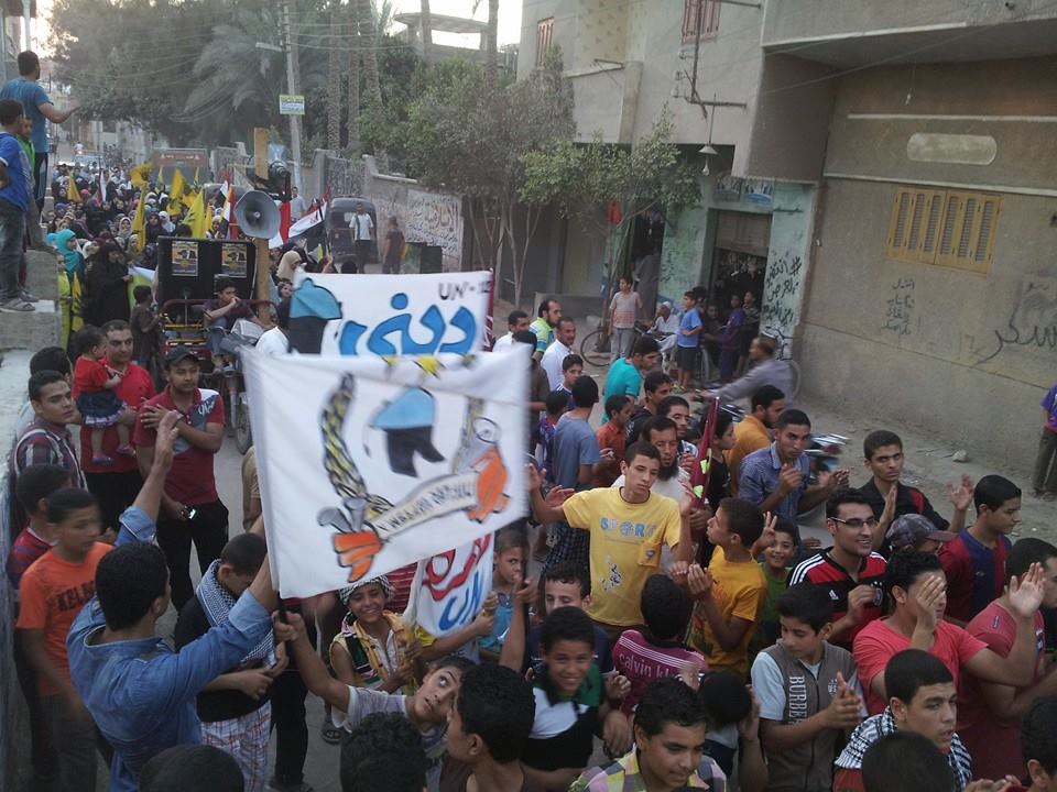نظم "التحالف الوطني لدعم الشرعية ورفض الانقلاب" في"الشرقية"، بالتنسيق مع "ألتراس نهضاوي"، مسيرة حاشدة، انطلقت من أمام مسجد "المساعدة"، وطافت شوارع مدينة "القرين". حمل المشاركون بها شارات رابعة، وأعلام مصر، وكذلك الأعلام الفلسطينية، ورايات تحمل شعارات الألتراس.