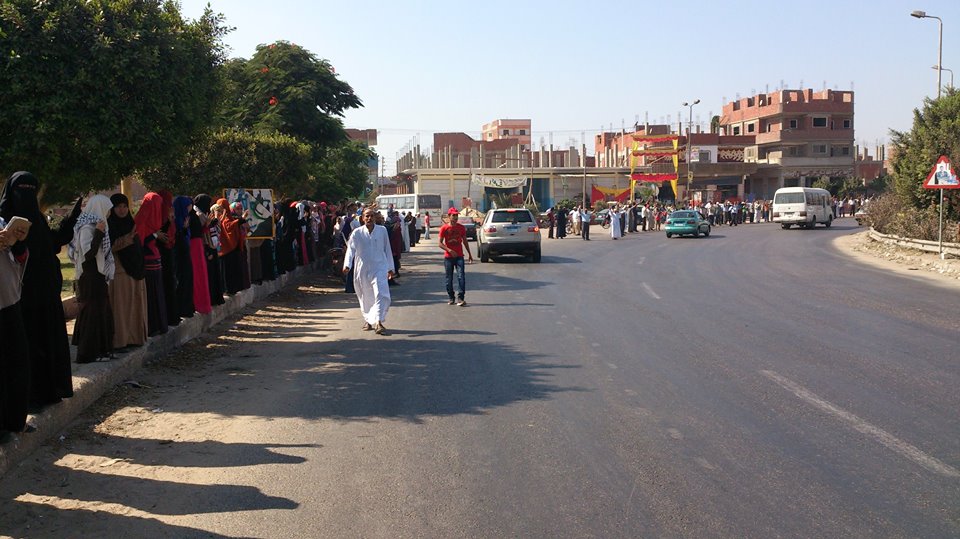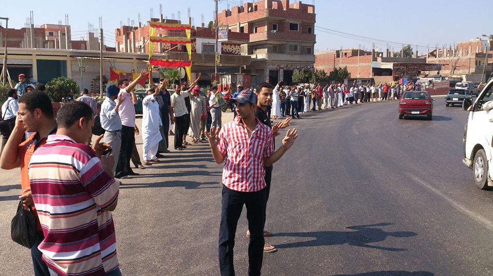 فينا أقام عدد من الأهالي سلسلة بشرية بطريق "بلبيس-العاشر من رمضان"، رفع المشاركرون خلالها لافاتات مطالبه بالإفرج عن المعتقليين في سجون العسكر، كما طالبوا بمحاكمة قادة الانقلاب .