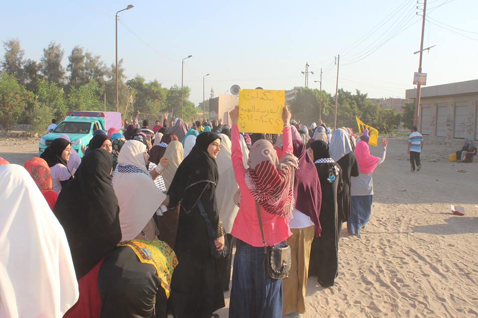 كما نظم رافضو الانقلاب بـ"عرب جهينة"، مسيرة انطلقت من أمام سنترال عرب جهينة، مروراً بعرب الصوالحة، وسط هتافات مناوئة لداخلية الانقلاب، واختتمت المسيرة فعالياتها أمام المعهد الدينى بـ"عرب العليقات".