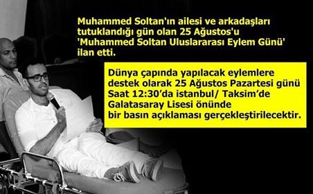 أعلن عدد من الحقوقيون الأتراك عقد مؤتمر صحفي بميدان تقسيم، ظهر غدٍ الإثنين؛ للتضامن مع "محمد صلاح سلطان" نجل الداعية الإسلامي "صلاح سلطان"، والمعتقل في سجون الإنقلاب المصرية منذ 25 أغسطس 2013.