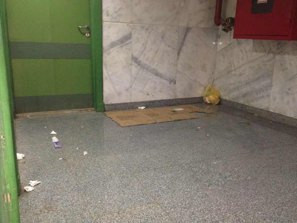 وفى صالات الإستقبال يفترش المرضى الأرضيات فى كل مكان نتيجة لتكدس المرضى وذويهم، أما عن دورات المياه، فهى لا تصلح بالمرة للإستخدام الاّدمى، بالإضافة إلى وجود مخلفات ونفايات طبية مع سوء حالة البنية التحتية بداخل المستشفى سواء كان فى صالات الإستقبال أو غُرف العمليات , الذي لا تصلح لأن تُجري فيها جراحات عادية أو جراحات كُبرى .
