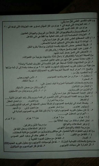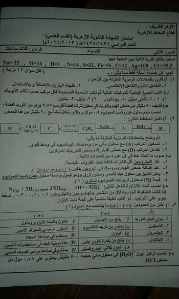 تداول طلاب الثانوية الأزهرية، ورقة أسئلة امتحان الكيمياء، للدور الثاني، للقسم العلمي عبر مواقع التواصل الاجتماعي وذلك بعد دقائق قليلة من فتح اللجان.
