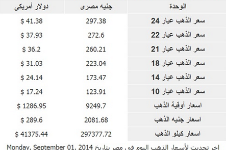 ووصلت أوقية الذهب اليوم إلي9249.7 جنيهًا مقارنة بـ 9206.63 جنيهًا أمس ، بينما سجل كيلو الذهب 297377.72 جنيهًا مقارنة بـ 295993.03 جنيهًا بالأمس، بينما سجل الجنية الذهب اليوم 2081.68 جنيهًا اليوم مقارنة بـ 2072 جنيخًا بالأمس.