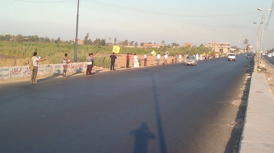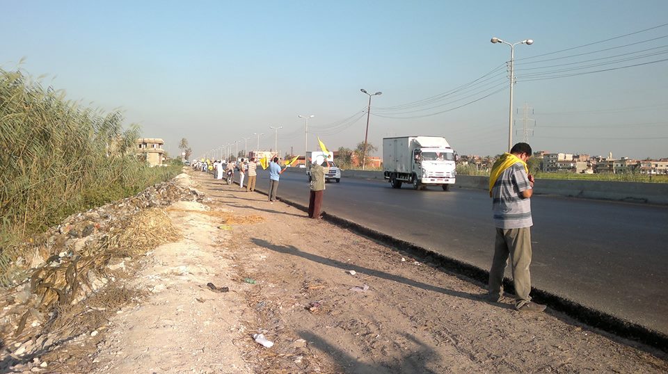 نظم أهالي مركز "أبوحمص" بالبحيرة، سلسلة بشرية على الطريق الزراعي "القاهرة - الإسكندرية"، عصر اليوم الإثنين، ...