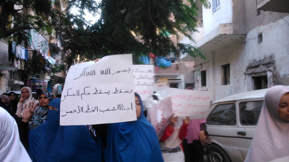 نظمت حركة "نساء ضد الانقلاب" بالإسكندرية، مسيرة حاشدة في منطقة "العصافرة، رددن خلالها "مصر حرة .. السيسي برة"، وعدد من الهتافات المنددة بالأزمة الاقتصادية التي تشهدها مصر.