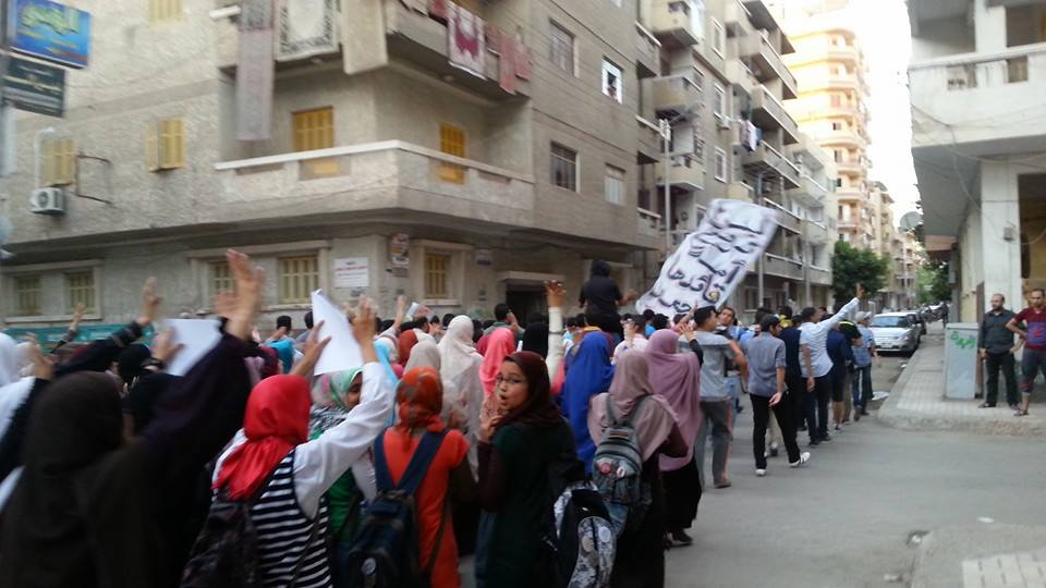 ردد المشاركون هتافات مناهضة لداخلية الانقلاب، كما طالبوا بمحاكمة قادة الانقلاب، وعودة "مرسي"، هذا وقد قامت قوات داخلية الانقلاب بمطارة المشاركين في المنطقة، ولم يذكر وجود أي اعتقالات حتى الآن.