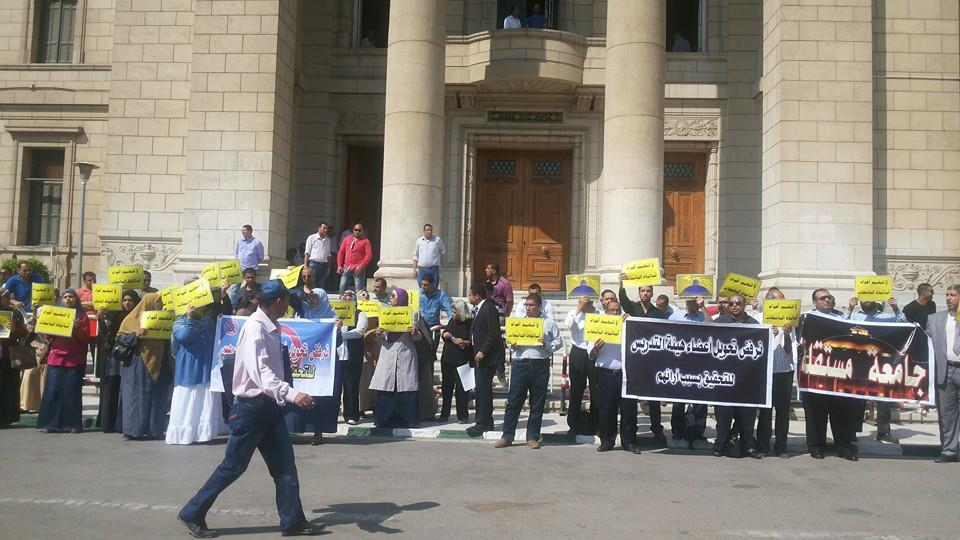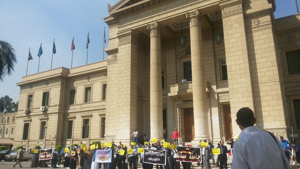 نظمت حركة "جامعة مستقلة" -اليوم الثلاثاء- وقفة احتجاجية بجامعة القاهرة تضامنًا مع اﻷساتذة المحالين للتحقيق وهم الدكتور سيف عبد الفتاح أستاذ العلوم السياسية والدكتور أحمد عبد الباسط المتحدث باسم حركة "جامعة مستقلة".