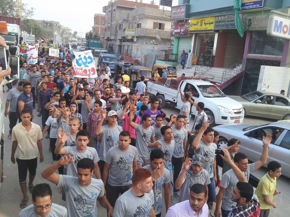 وانطلقت مسيرة حاشدة من أمام كافتيريا الواحة، بمدينة أبو حماد، لتجوب شوارع المدينة، وسط هتافات مناوئة لداخلية الانقلاب، وأخرى مطالبة بالإفراج عن المعتقليين.