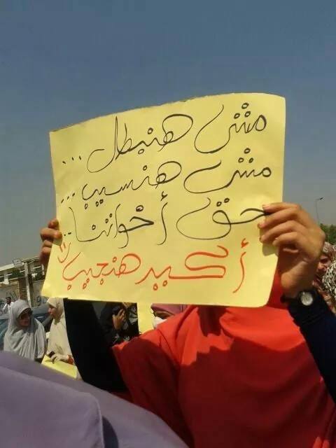 كما قامت الطالبات برفع شارات رابعة، كما رددن الهتافات المناهضة للانقلاب العسكري، وأخرى مطالبة بالإفراج عن زملائهم المعتقليين، مطالبين بسرعة الإفراج عنهم، كما أكدوا على استمرار حراكهم الثوري.