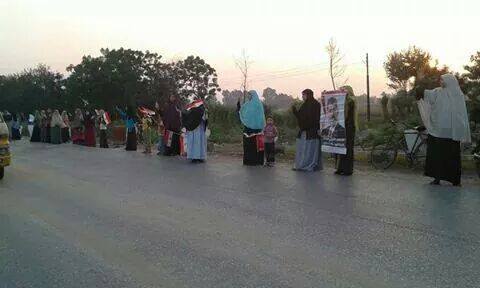 نظم "التحالف الوطني لدعم الشرعية ورفض الانقلاب" في المنوفية، سلسلة بشرية أمام قرية الشهيد فكري، التابعة لمركز بركة...