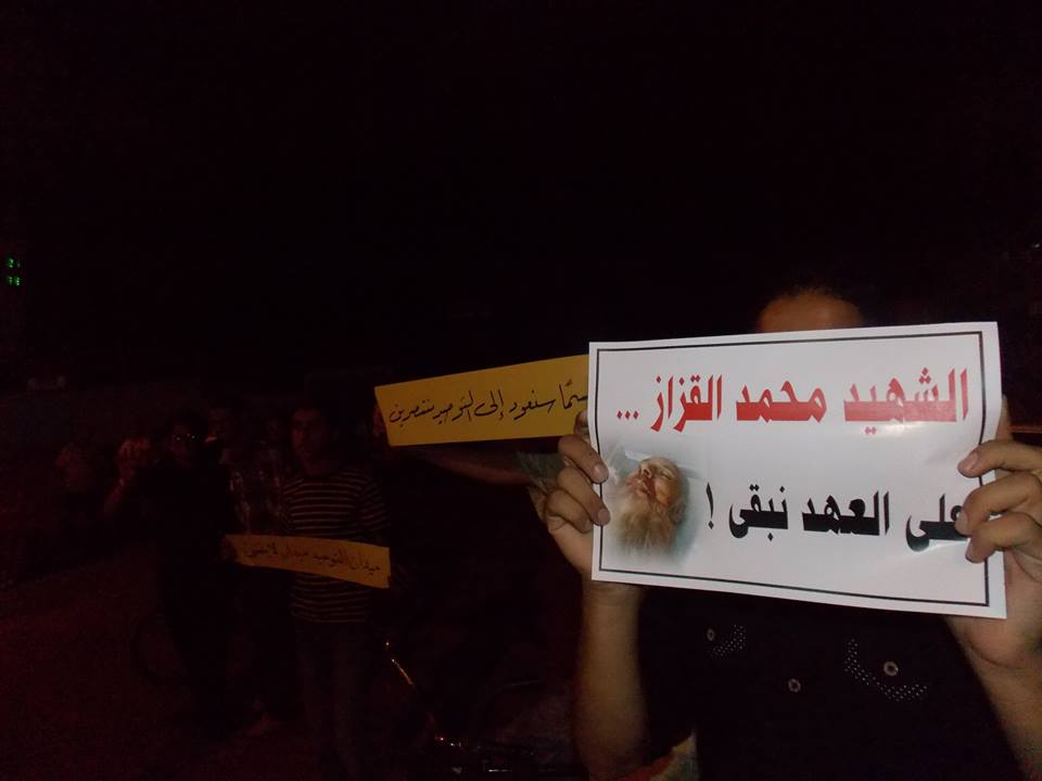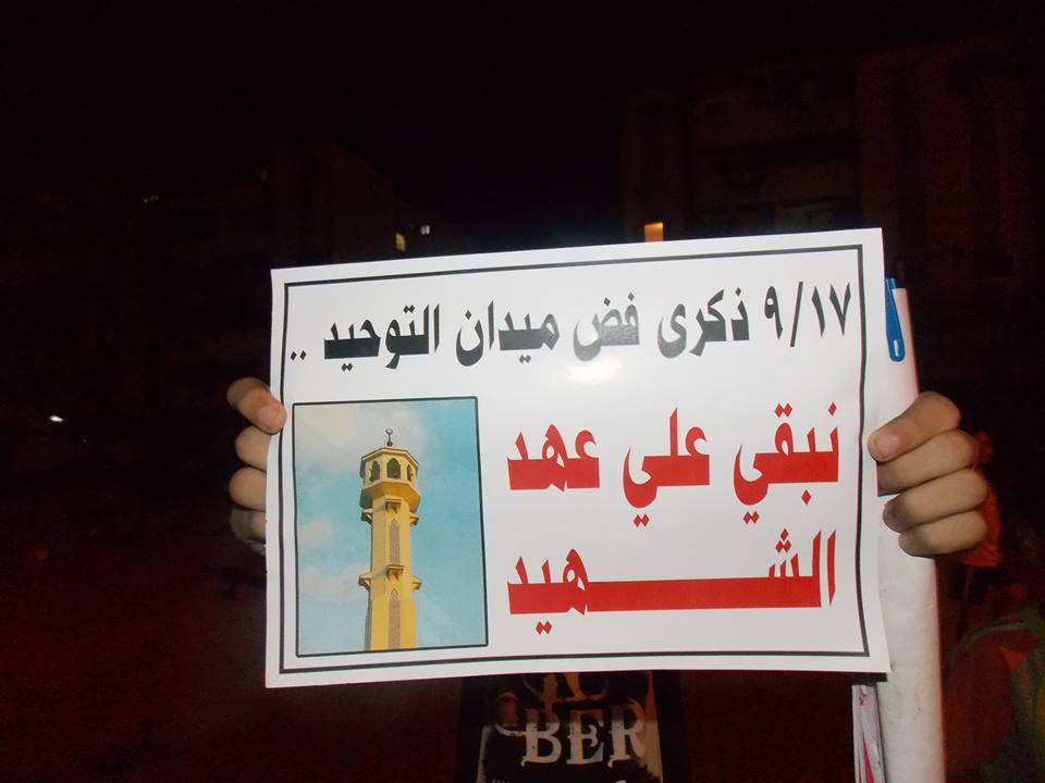 وفي نفس السياق، انطلقت مسيرة من أمام مسجد الصالحين، في ذكرى فض ميدان التوحيد، والذي أستشهد خلاله، محمد القزاز، وأصيب أخرون.