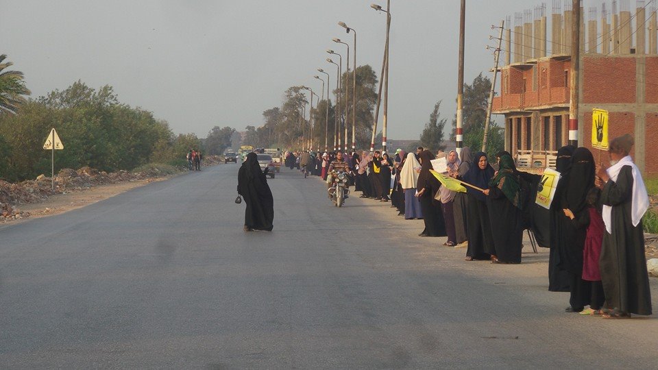 نظم رافضو الانقلاب العسكري في محافظة "الشرقية"، سلسلة بشرية على طريق "ههيا - الزقازيق"، في قرية العدوة، مسقط رأس...