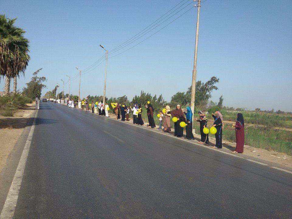 وغربت شمس اليوم على سلسة بشرية حاشدة على طريق المنصورة جمصة السياحي للمرة الثانية على التوالي، رفع المشاركون فيها أعلام مصر وصور الرئيس محمد مرسي ولافتات تندد بالأحكام القضائية الجائرة على جميع رافضي حكم العسكر ، والتي يقابلها براءات لكل فلول نظام مبارك .