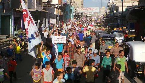 خرج أهالي مدينة "حوش عيسي" بمحافظة البحيرة، اليوم، في مسيرة حاشدة، للمطالبة بإسقاط الانقلاب العسكري، ضمن فعاليات أسبوع "العدالة".