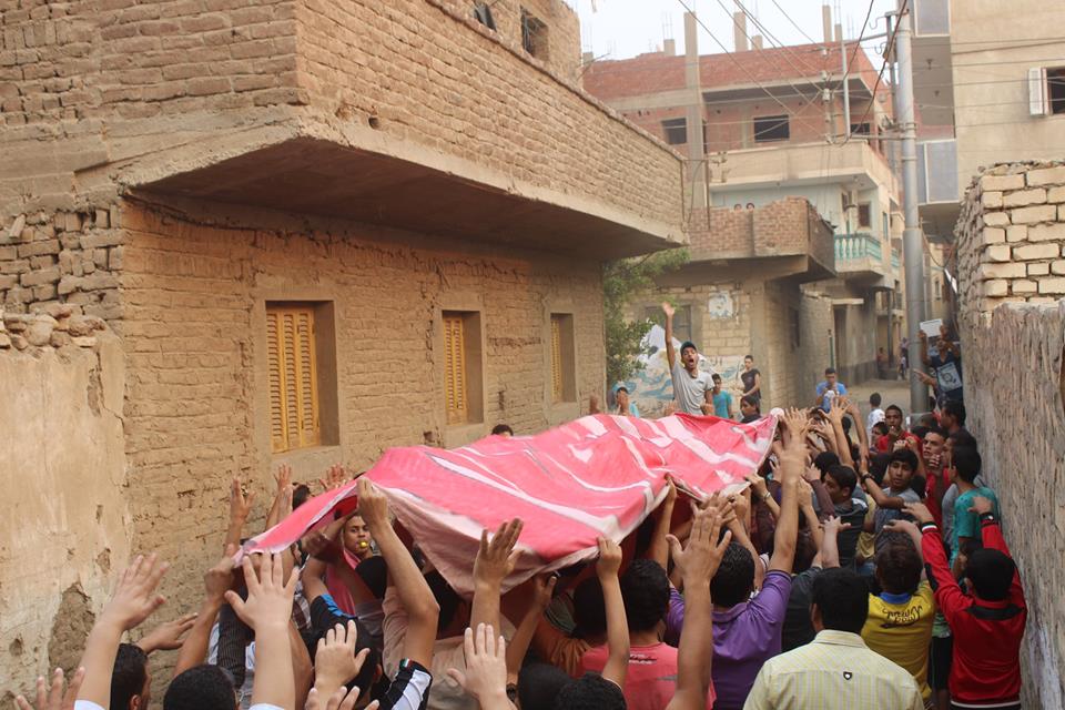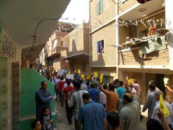 كما خرجت مسيرة من مسجد السلام بقرية أبو الغيط،  لتجوب شوارع القرية، وسط هتافات: "كل سنة وإنت طيب.. الريس مرس راجع قريب"، "افرح ياشعب وعيش.. السيسي قال مفيش"، كما حمل المشاركون شارات رابعة، وأعلام مصر.