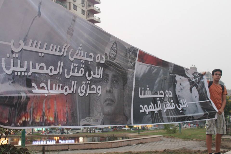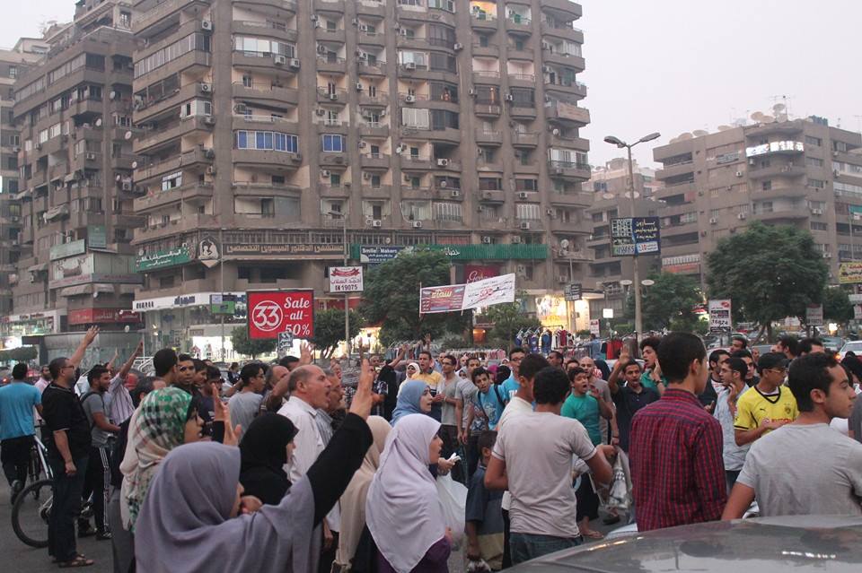 نظم ثوار مدينة نصر، وقفة احتجاجية حاشدة مناهضة للانقلاب العسكري، قبيل المغرب، بعباس العقاد، رفع المشاركون شارات رابعة، وأعلام مصر، فيما رددوا تكبيرات العيد، والهتافات المهنئة للأهالي.