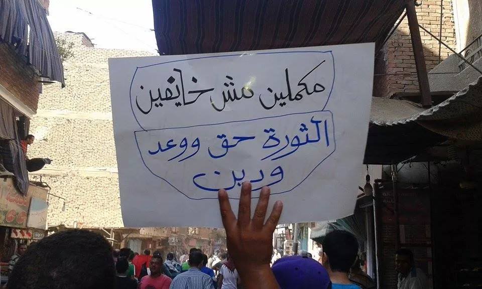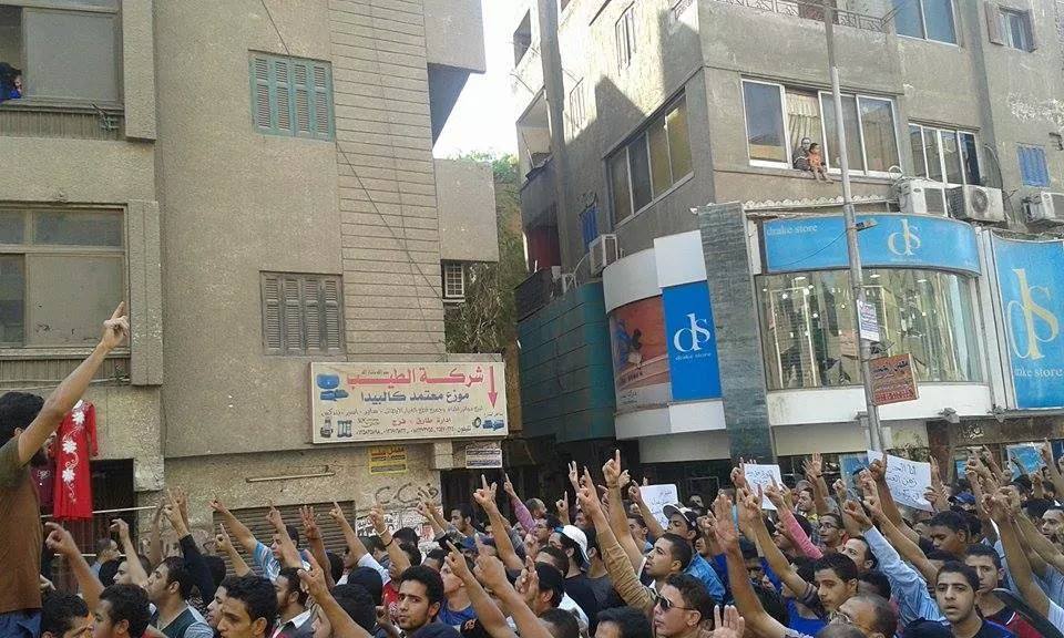 حيث خرجت مسيرة من منطقة ترسا، ظهر اليوم، مرورًا بمنطقة الدائري في الطالبية، في تحدٍ واضح لقوات أمن الانقلاب، المنتشرة بالمنطقة، وسط هتافات مناهضة للانقلاب العسكري وممارساته، كما طالب المشاركون بالقصاص لدماء الشهداء.