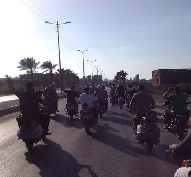 حيث نظم التحالف الوطنى لدعم الشرعية بدمياط مسيرة بالدراجات البخارية انطلقت من منطقة شطا مرورًا بميدان الشهابية، ووصولاً إلى كورنيش النيل، رفعوا خلالها رمز رابعة وصور المعتقلين .