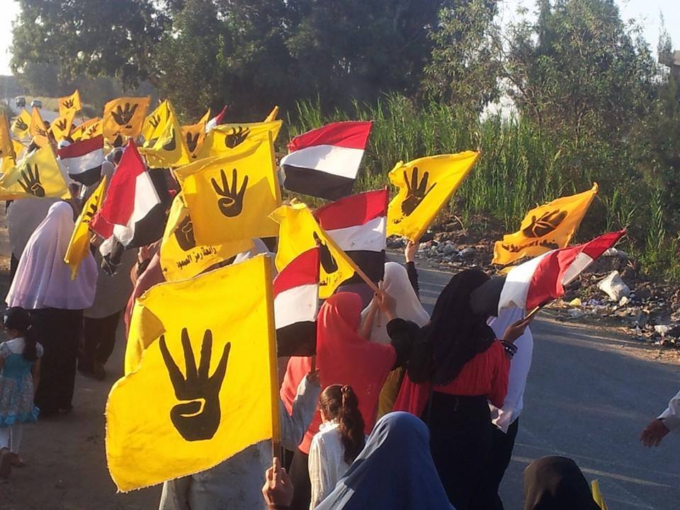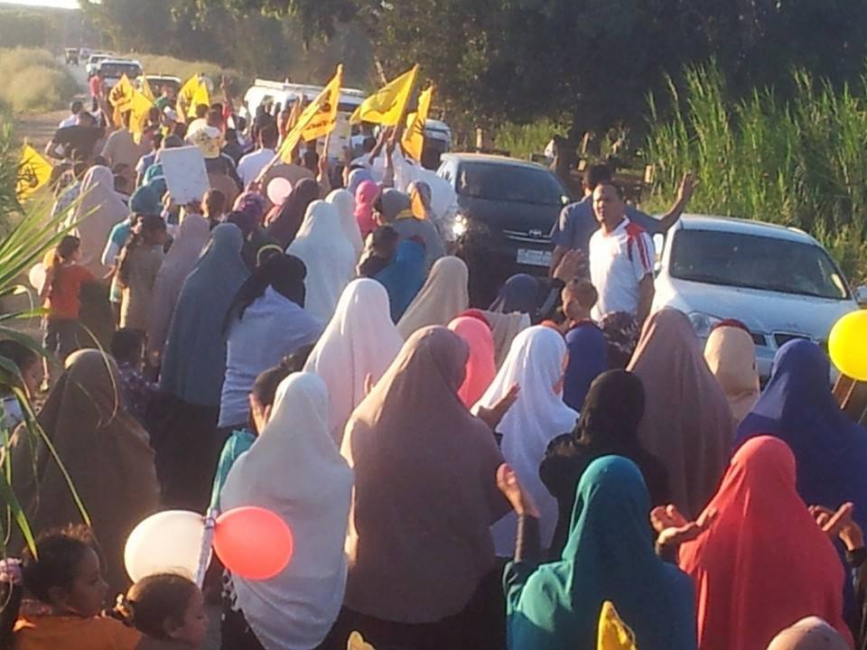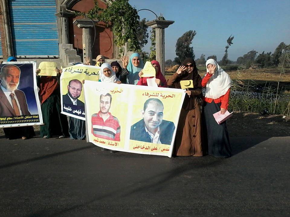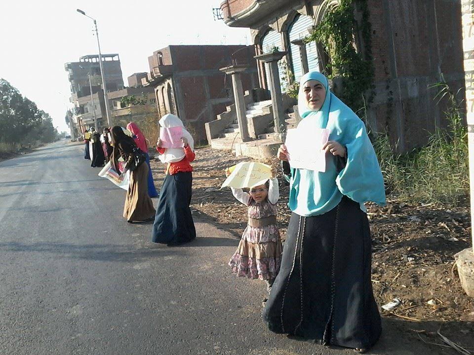 نظمت حركة "نساء ضد الانقلاب" بكفر الشيخ، سلسلةً بشرية، اليوم، في قرية "شباس الشهداء" بمركز دسوق، رفعت خلالها المشاركات صورًا للمعتقلين، مطالباتٍ بالإفراج عنهم، والقصاص لدماء الشهداء.