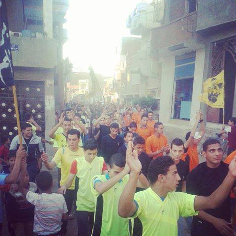 جابت المسيرة شوارع القرية وسط هتافات مناهضة لجيش وشرطة الانقلاب، كما رفعوا شارات "رابعة"، وصورًا للرئيس "مرسي"، وأكد المشاركون على مواصلة حراكهم الثوري حتى إسقاط الانقلاب.