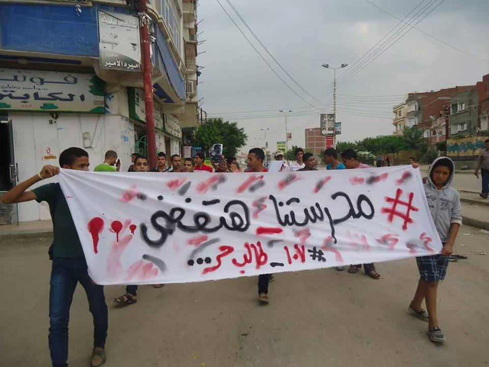 نظمت حركة "شباب ضد الانقلاب" في البحيرة، مسيرة مناهضة للانقلاب، عصر اليوم، في منطقة المهاجرين بمدينة كفر الدوار، تحت شعار "مدرستنا هتفضى"، للتنديد باعتقال زملائهم، وللمطالبة بالإفراج الفوري عنهم.
