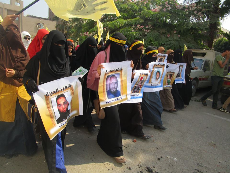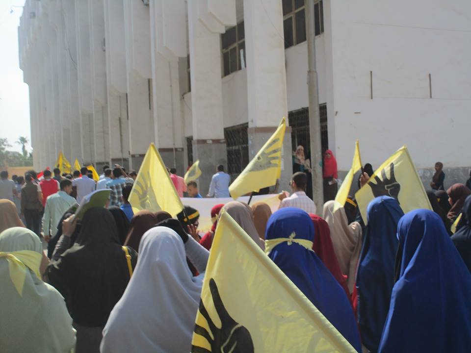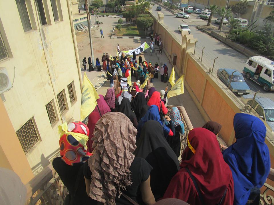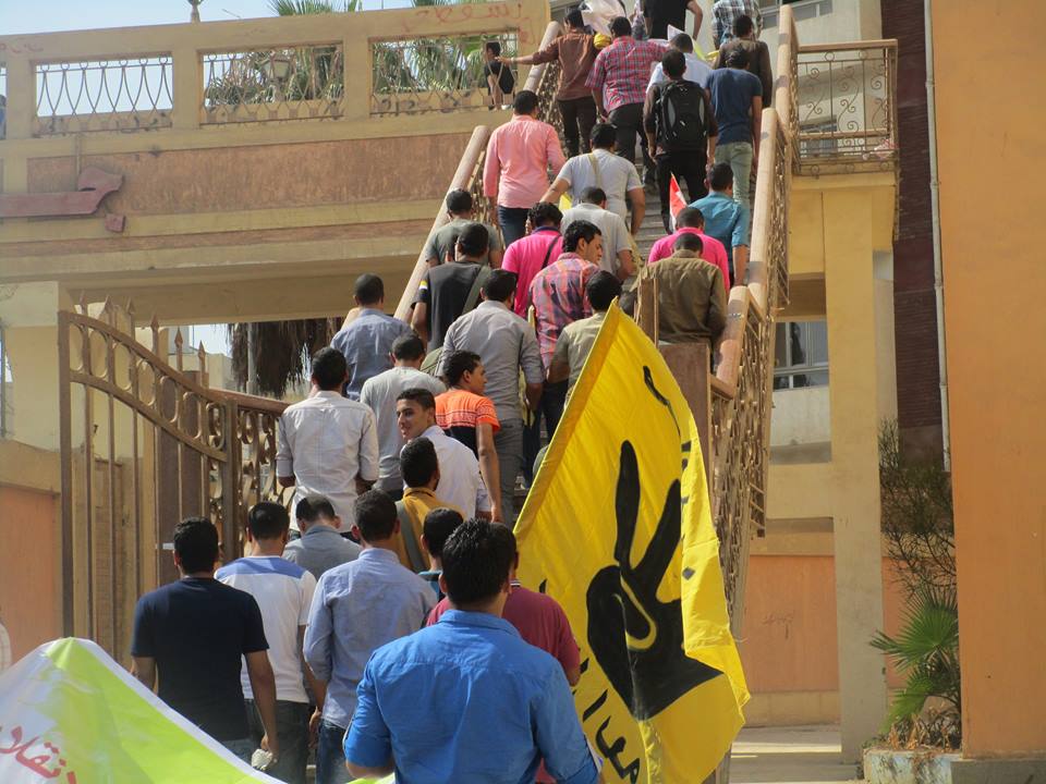 خرج الطلاب في مسيرة حاشدة، عقب انتهاء السلسلة، لتجوب الحرم الجامعي، بالرغم من التواجد الأمني المكثف بالقرب من كلية التربية، وردد الطلاب هتافات مناوئة لداخلية الانقلاب، وأخرى مطالبة بالقصاص لدماء الشهداء، ومحاكمة قادة الانقلاب.