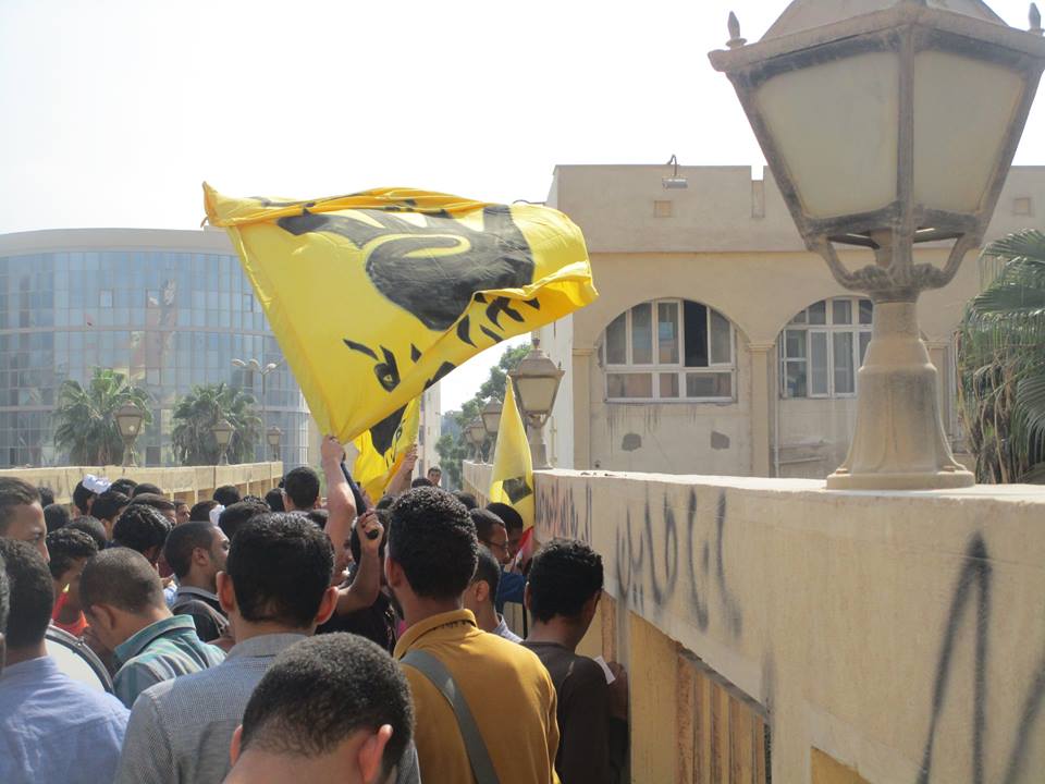 حيث نظمت حركة "طلاب ضد الانقلاب" سلسلة بشرية امتدت أمام كلية الهندسة، حمل المشاركون فيها صورًا لزملائهم المعتقليين، مطالبين بالإفراج الفوري عنه، كما حملوا شارات رابعة، وأعلام مصر.