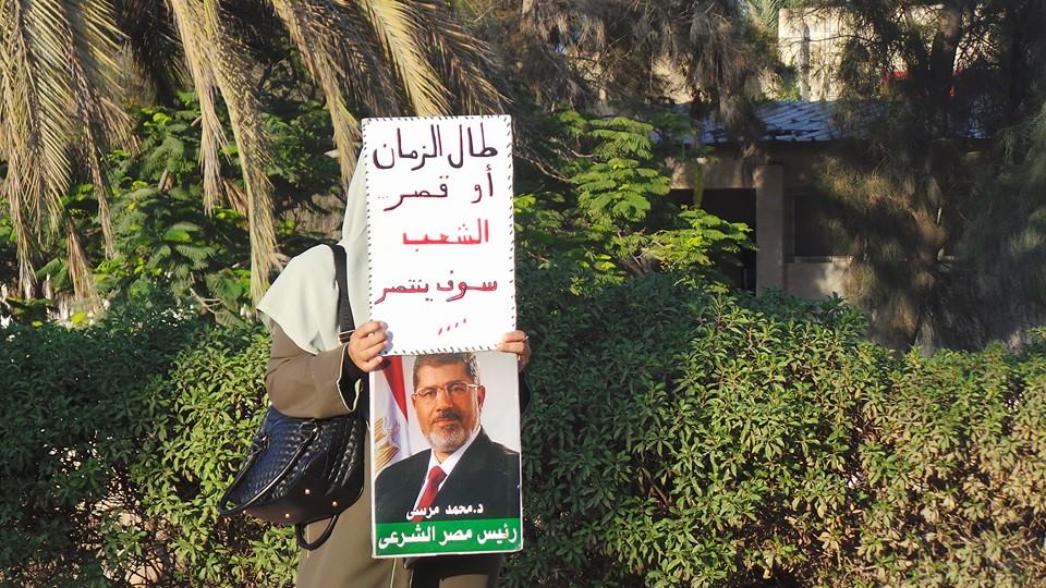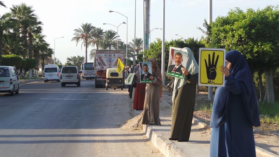رفع المشاركون شارات رابعة، وأعلام مصر، كما حملوا صورًا للرئيس محمد مرسي، مطالبين بعودته، ورددوا هتافات مطالبة بالحرية، كما أكدوا على استمرار تظاهراتهم المناهضة للانقلاب لحين إسقاطه.