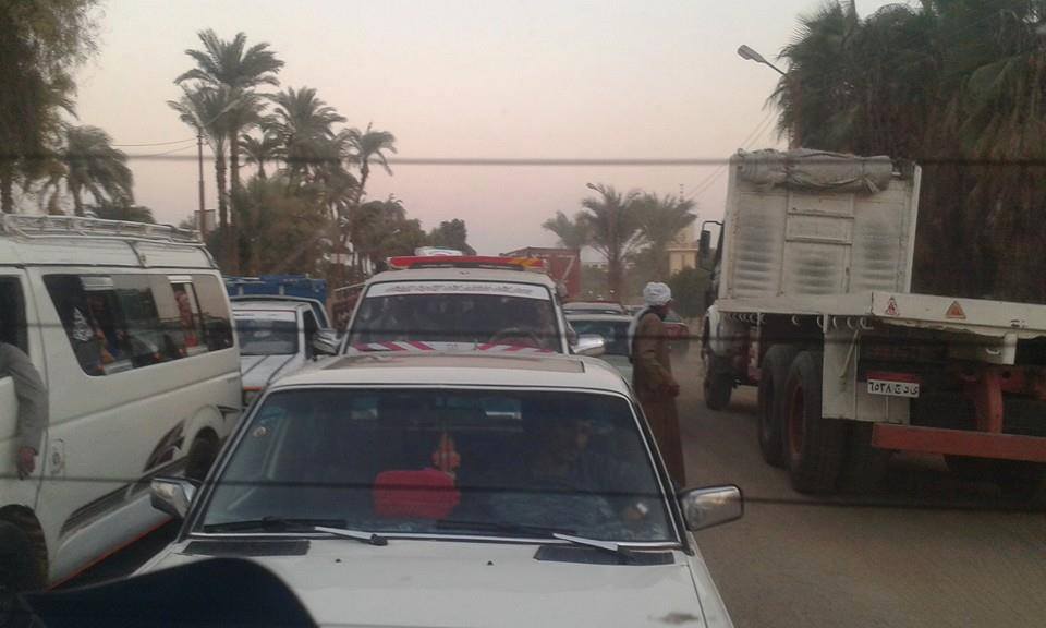 تشهد مداخل ومخارج قريتي بني قرية وأم القصور – على طريق أسيوط الزراعي – ازدحامًا مروريًا شديدًا، وتعطلًا للطريق السريع لأكثر من ساعة، وازدحامًا أيضًا أعلى كوبري المؤدي إلى السكة الحديد والمعرّض للسقوط.