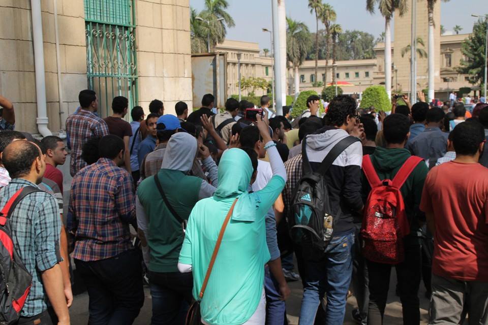 نظمت حركة "طلاب ضد الانقلاب" بجامعة القاهرة، مسيرة حاشدة، انطلقت، اليوم، من أمام كلية العلوم، لتطوف أنحاء الجامعة، وسط هتافات منددة بالقمع الأمني، والانتهاكات التي تمارس بحق الطلاب، كما طالبوا بالإفراج عن زملائهم المعتقلين في سجون العسكر.