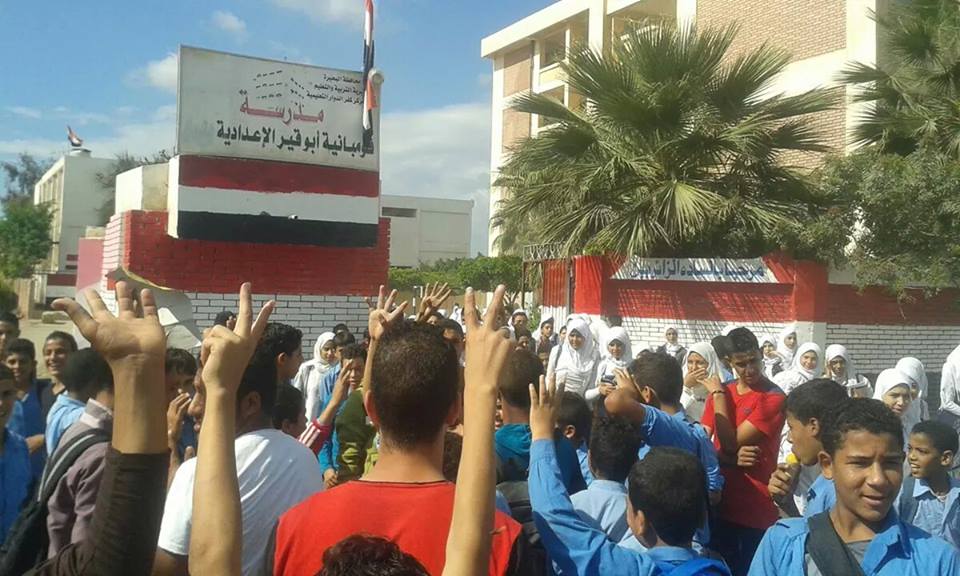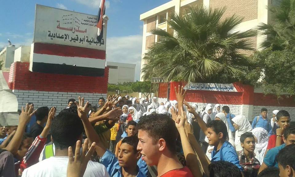 نظمت حركة "عفاريت ضد الانقلاب" في البحيرة، وقفة احتجاجية أمام مدرسة قومبانية أبو قير الإعدادية، وذلك عقب انتهاء اليوم الدراسي، للمطالبة بالإفراج عن زملائهم المعتقلين في سجون العسكر.