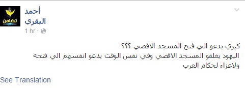 وقال البقري في تدوينة عبر صفحته على موقع التواصل الاجتماعي "فيس بوك": "كيري يدعو إلى فتح المسجد الأقصى؟؟".