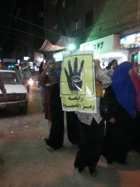 حمل المشاركون شارات رابعة، وأعلام مصر، فيما نددوا بالأوضاع الاقتصادية المتردية، وغلاء الأسعار، وتأتي الفعالية استجابةً لدعوة التحالف الوطني لدعم الشرعية ورفض الانقلاب، ضمن فعاليات أسبوع "العسكر يبيع سيناء".