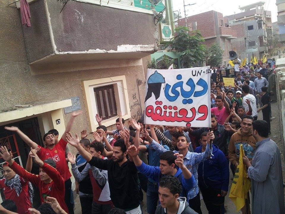 أقام التحالف الوطنى لدعم الشرعية ورفض الانقلاب في الشرقية، سلسلة بشرية  بقرية "أنشاص الرمل"، على طريق...