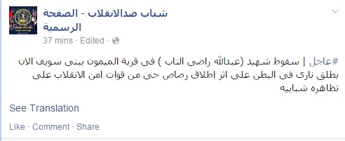 ارتقى منذ قليل الشهيد عبدالله راضى الناب، شهيدًا بقرية الميمون التابعة لمركز الواسطي شمال بني سويف، جراء إصابته بطلق نارى...